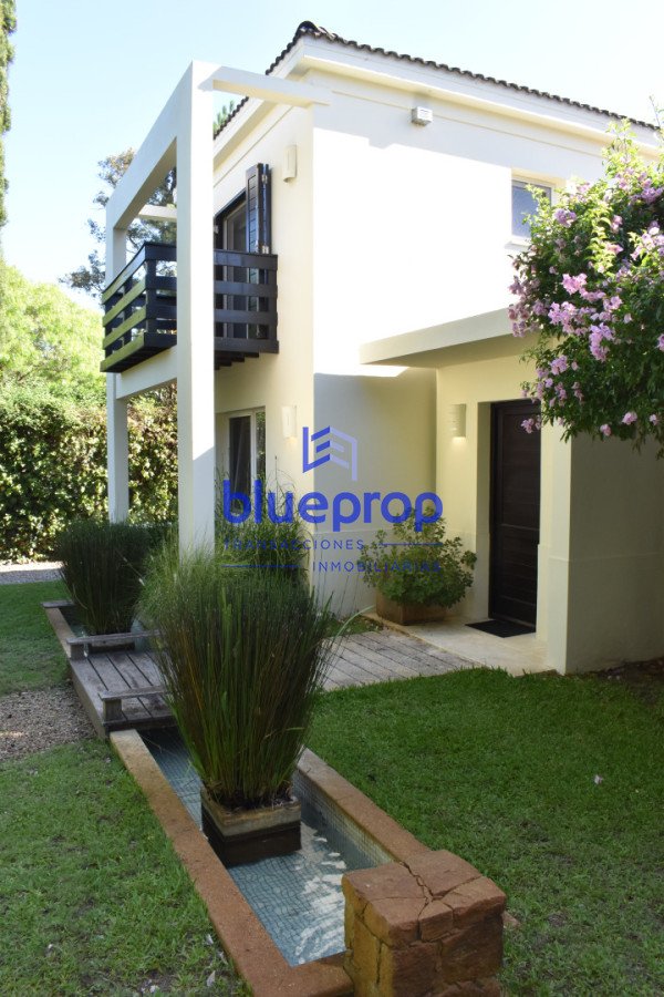 La casa se desarrolla en dos plantas, sobre un predio totalmente cercado, lo que brinda gran intimidad. Su acceso se destaca por un elegante pórtico, rodeado de un hermoso jardín cuidadosamente diseñado, con una pequeña cascada y un pintoresco puentecito que realza el ingreso a la propiedad.